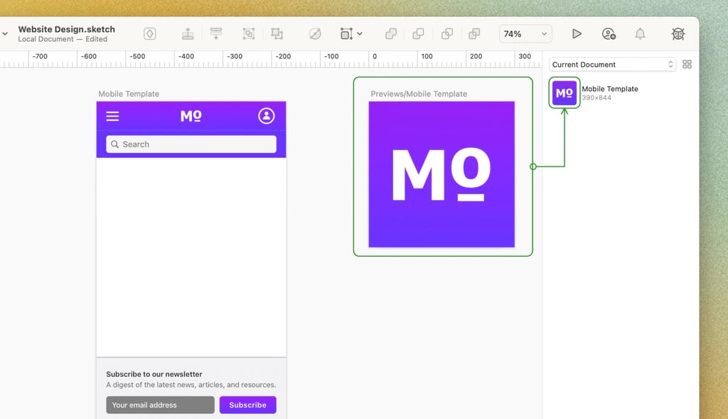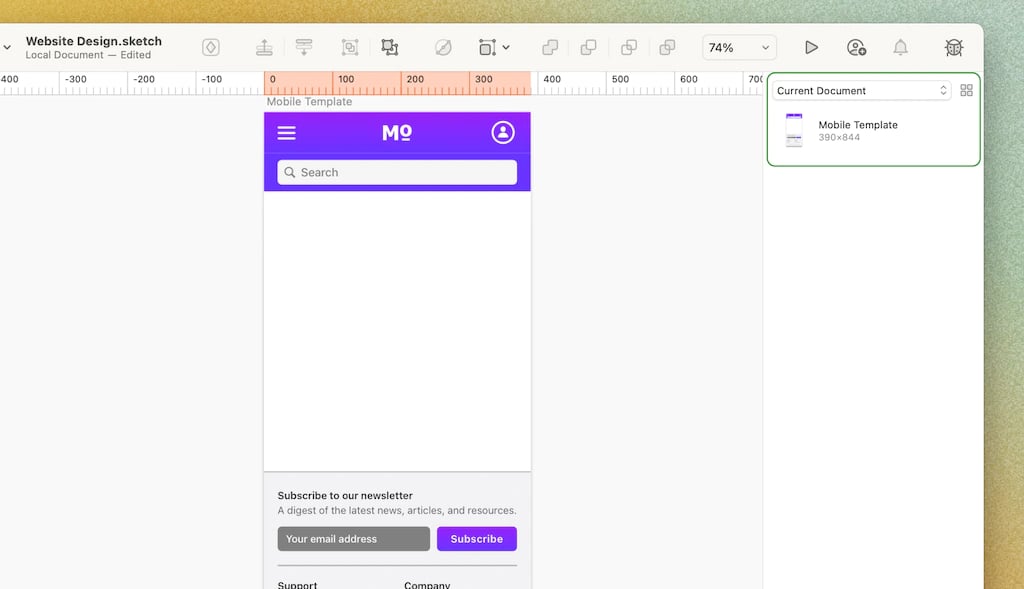 你可以在 Sketch 文档中使用任意多的页面。页面非常适合组织工作文件,比如为每次迭代版本创建一个新的页面,或者将复杂的设计分成多个页面,每个区域都有一个页面。当然使用多个页面也有助于提高 Mac 应用程序在处理复杂文档时的性能。